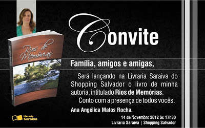 A escritora iguaiense Ana Angélica Matos Rocha Gonçalves estará lançado, quarta-feira (14), a partir das 17:30h, na Livraria Saraiva do Shopping Salvador, o Livro “Rios de Memórias”.