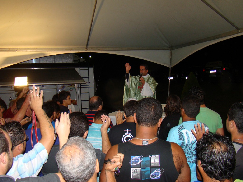 Uma missa, celebrada pelo Padre Estevam, abençoou os caminhoneiros que estavam no local.