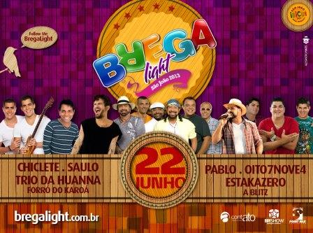 Sabe aquela festa irreverente, alegre e que todo mundo quer ir no São João? Ela está chegando! O Brega Light 2013 já tem data e atrações definidas. A festa será realizada no dia 22 de junho em Ibicuí (BA) e contará com as seguintes atrações: Chiclete com Banana, Saulo, Pablo, Trio da Huanna, Estakazero, Oito7Nove4, Forró do Karoá e A Blitz.