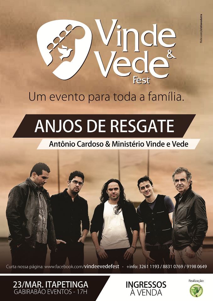 Itapetinga estará recebendo hoje (23) a banda católica Anjos de Resgate, como atração principal do Vinde e Vede Fest, que será realizado no Gabirabão Eventos a partir das 17:00h.