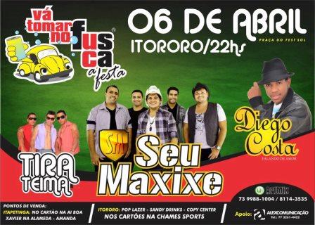 Próximo Sábado (06) acontecerá na Praça do Fest Sol, na cidade de Itororó, mais uma edição da festa Vá Tomar no Fusca.