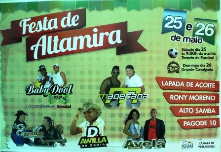 Dando continuidade ao ciclo de festas dos distritos de Iguaí, inicia-se hoje (25) a Festa de Altamira, que vai até amanhã (26).