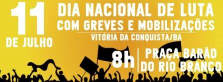 Movimentos sociais e sindicais de Vitória da Conquista participarão, nesta quinta-feira (11), do Dia Nacional de Luta com Greves e Mobilizações.