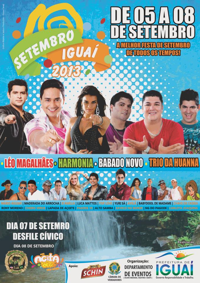 O Departamento de Eventos e a Prefeitura Municipal de Iguaí divulgaram a programação completa da Festa de Setembro, que acontecerá de 05 a o8/09.