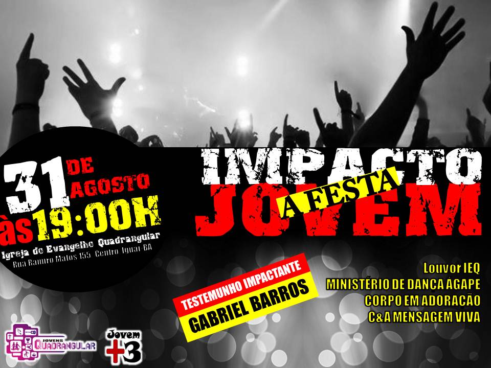 A Igreja do Evangelho Quadrangular (IEQ) realizará no dia 31 deste mês, às 19 horas, a Festa Impacto Jovem.