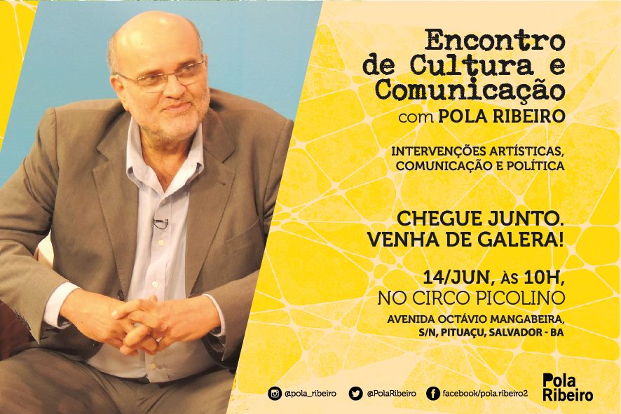 O Encontro de Cultura e Comunicação com intervenções artísticas e políticas, organizado por Pola Ribeiro será realizado no dia 14/06 – próximo sábado – a partir das 10h, no Circo Picolino em Pituaçu.