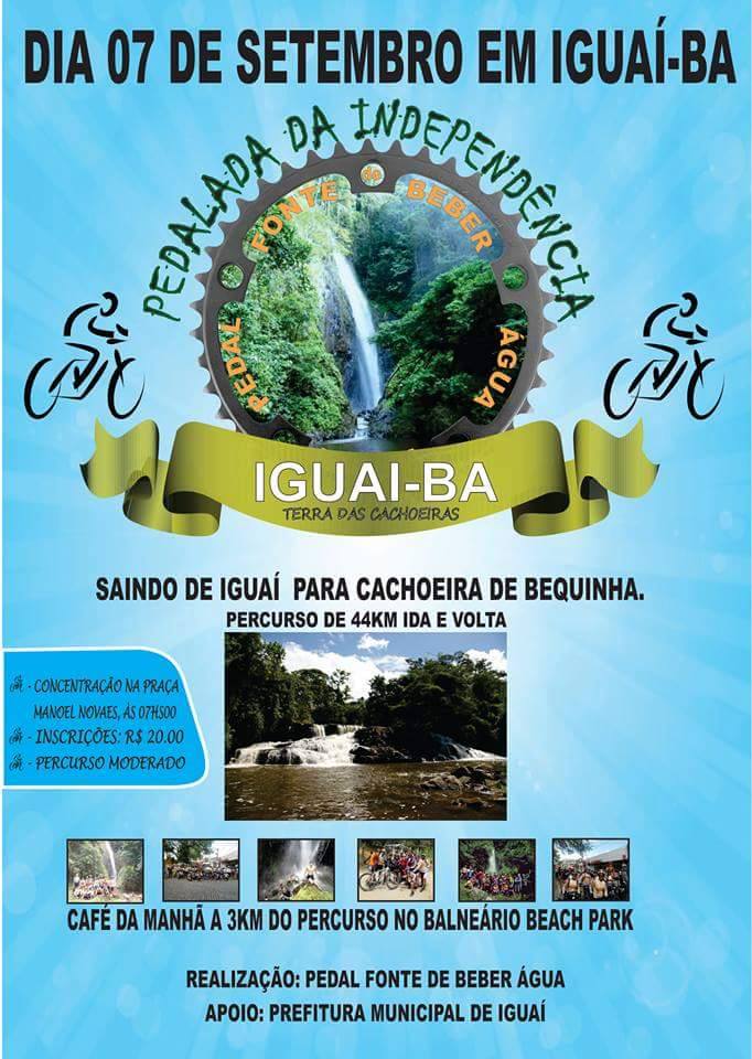Será realizada em Iguaí a Pedalada da Independência no dia (07) de setembro, saindo da sede do município com destino à Cachoeira de Bequinha na Região do Riachão de Camberiba, em um percurso de 44 km (ida e volta).
