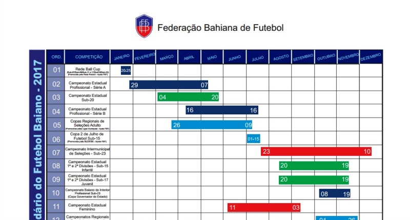Através da RDI-01/17, a entidade apresentou o Calendário de 2017 do Futebol da Bahia. Principal competição do estado, a Série A do Baianão irá até o dia 7 de maio.