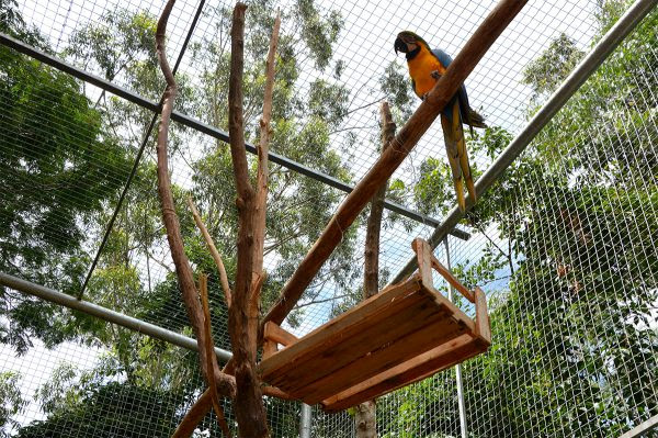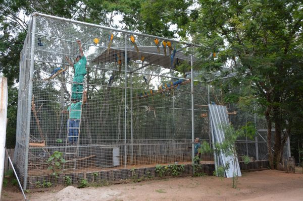 Ironicamente, a despeito de sua semelhança com uma “gaiola”, a “avoadeira” pode ser considerada a última etapa para a liberdade. É isso o que ela significa para as 42 araras da espécie “Canindé” que se encontram lá dentro. Elas estão em fase de preparação para serem devolvidas à vida selvagem.