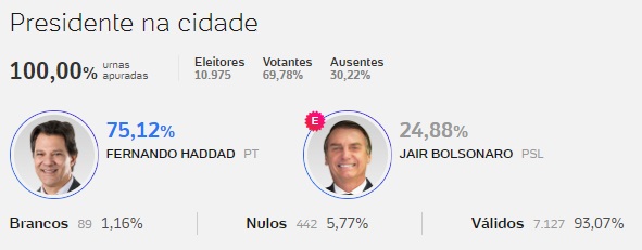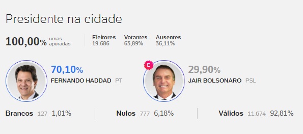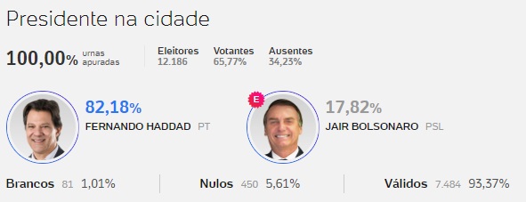 Fernando Haddad teve uma expressiva votação na Bahia e também em Iguaí, Ibicuí e Nova Canaã.