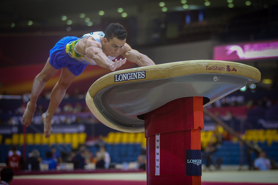 Além de participar da final do individual geral em Doha, Caio Souza foi o primeiro brasileiro a conseguir uma final no salto em Mundiais. Ele se qualificou em quinto lugar e terá pela frente os favoritos russos Artur Dalaloyan (campeão na equipe, no solo e no individual geral) e Nikita Nagornyy, além do armênio Artur Davtyan e o norte-coreano Ri Se Gwang, atual campeão olímpico e primeiro lugar na qualificatória.