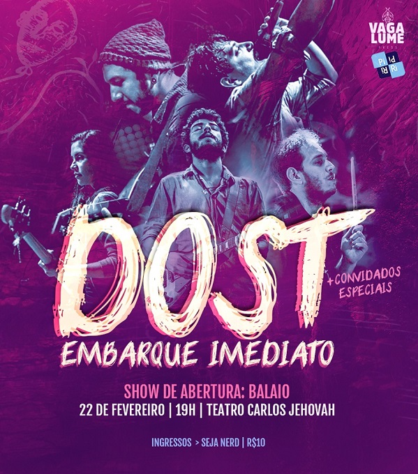 A banda Dost é composta por Lucas Sampaio (vocalista), Luiz Castro (bateria), Andresa Sampaio (contrabaixo), Diego Gusmão (guitarra) e Luan Eliseu (guitarra). Os ingressos antecipados estão à venda no Sympla e na Loja Seja Nerd, com valor de R$10,00.