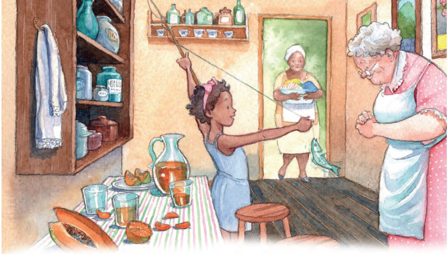 Outro exemplo pode ser percebido em “Na casa ainda existem duas pessoas – Tia Nastácia, negra de estimação que carregou Lúcia em pequena, e Emília, uma boneca de pano bastante desajeitada de corpo”, na readaptação fica “Na casa ainda há duas pessoas: Tia Nastácia, a velha cozinheira que carregou Narizinho em pequena, e Emília, uma boneca de pano bastante desajeitada de corpo”.
