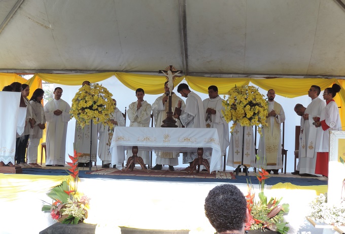 Já no meio da tarde, às 15h, foi realizada a Santa Missa na Praça Manoel Novaes, celebrada pelos padres Geneildo Almeida Lima, Mairton Marques do Amaral Sales e padres do Vicariato São Marcos.