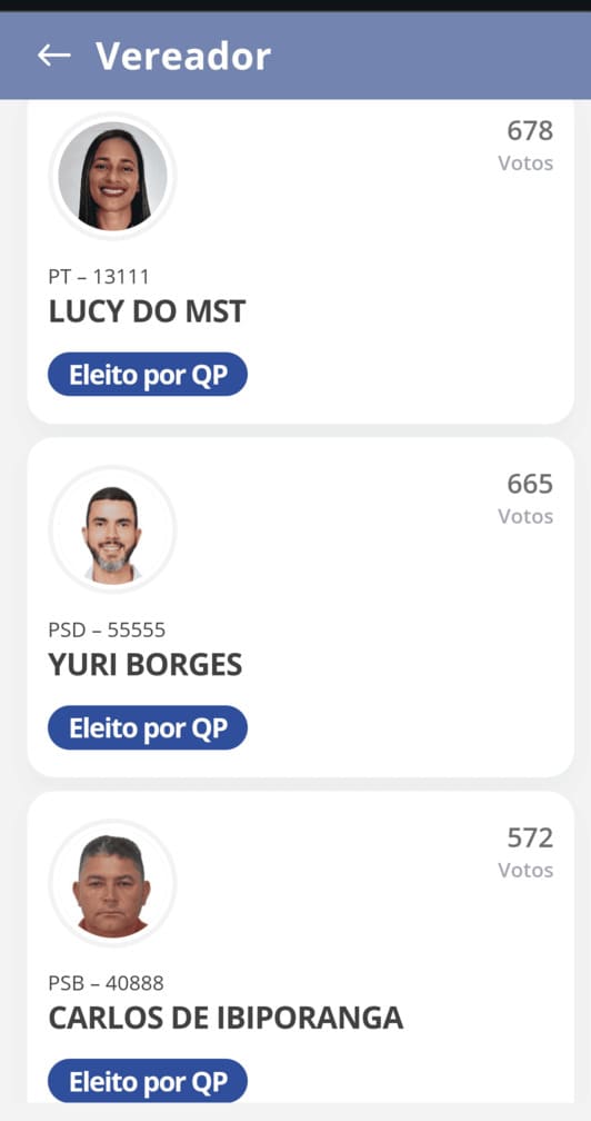 Já Dr. Péricles, candidato do PSD, apoiado pelo atual prefeito, Rony Moitinho, obteve 42,33%, com 5.907 votos. Thiago Gonçalves, do PL, alcançou somente 1,33%, obtendo 186 votos válidos.