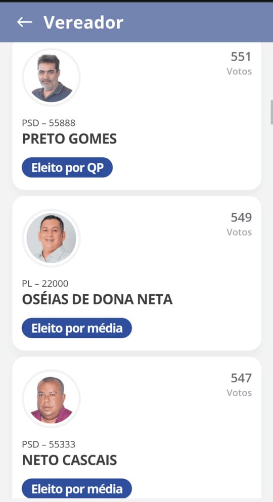 Preto Gomes – 551 votos;
